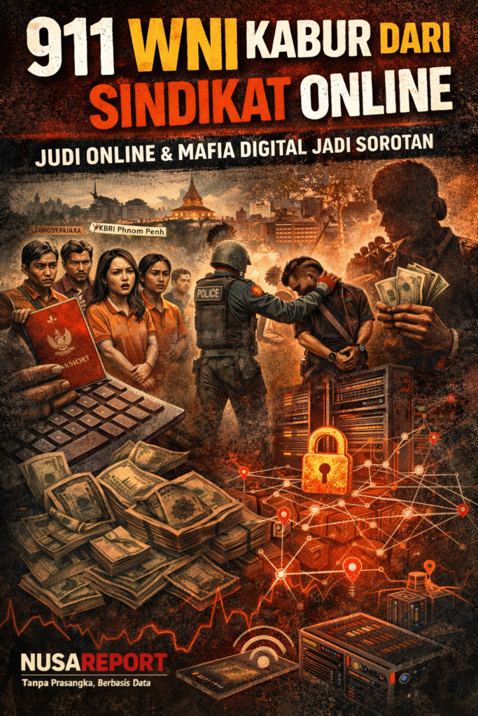 NUSAREPORT-Jakarta, Selasa 20/1/2026,- Kedutaan Besar Republik Indonesia (KBRI) di Phnom Penh, Kamboja, mencatat lonjakan laporan dari warga negara Indonesia (WNI) dalam rentang 16–19 Januari 2026. Total sebanyak 911 WNI melapor, sebagian besar merupakan pekerja perusahaan penipuan daring yang melarikan diri dari sindikat setelah pemerintah Kamboja melakukan operasi besar-besaran terhadap jaringan scam online di berbagai wilayah.