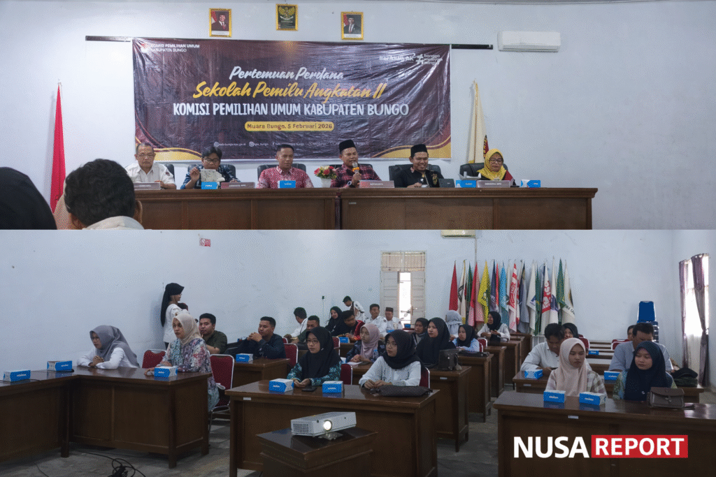 NUSAREPORT- Bungo,- Komisi Pemilihan Umum (KPU) Kabupaten Bungo kembali menunjukkan komitmennya dalam memperkuat literasi demokrasi di tingkat lokal. Kamis, 5 Februari 2026, KPU Bungo menggelar pertemuan perdana Sekolah Pemilu Angkatan ke-II yang berlangsung di Aula KPU Kabupaten Bungo.