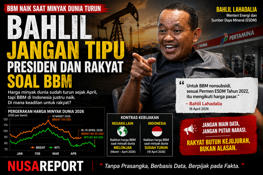 NUSAREPORT-Jakarta , Jumat 24 April 2026,- Kebijakan kenaikan harga bahan bakar minyak (BBM) nonsubsidi pada 18 April 2026 memantik kritik tajam publik. Sorotan tidak semata pada keputusan kenaikan, melainkan pada dasar argumen dan momentum kebijakan yang dinilai janggal.