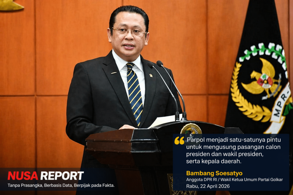 NUSAREPORT-Jakarta, Rabu 22 April 2026,- Upaya memperbaiki kualitas bangsa dinilai harus dimulai dari pembenahan partai politik sebagai fondasi utama demokrasi. Tanpa reformasi serius di tubuh partai, agenda perbaikan politik berisiko berjalan di tempat dan gagal menyentuh akar persoalan.