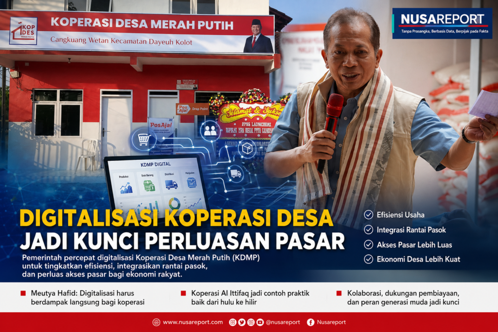 NUSAREPORT- Pos Bandung,Minggu 26 April 2026,- Pemerintah mulai mengakselerasi transformasi digital pada Koperasi Desa Merah Putih (KDMP) sebagai strategi memperkuat fondasi ekonomi berbasis desa. Langkah ini tidak sekadar mengikuti tren teknologi, melainkan diarahkan untuk menjawab persoalan klasik koperasi: efisiensi usaha, integrasi rantai pasok, dan keterbatasan akses pasar.