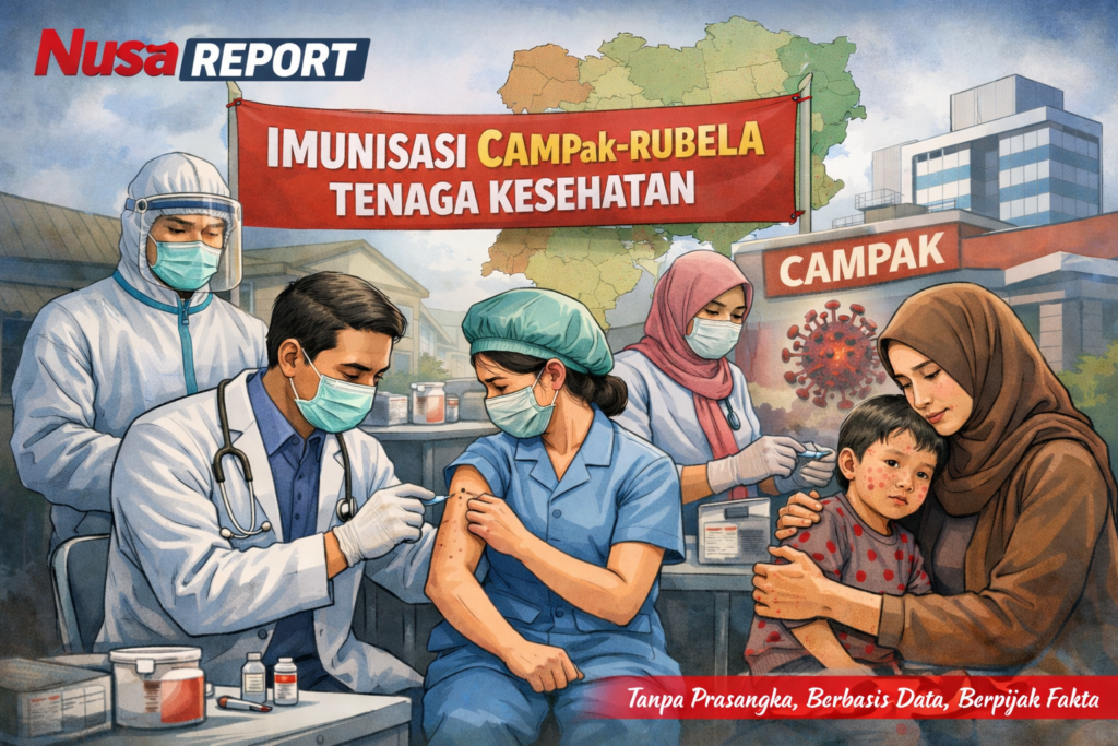 NUSAREPORT-Muara Bungo, Kamis 16 April 2026,- Ancaman campak kembali menjadi perhatian serius di Kabupaten Bungo. Di tengah lonjakan kasus nasional, pemerintah daerah melalui Dinas Kesehatan Kabupaten Bungo mengambil langkah tegas dengan memperkuat perlindungan tenaga kesehatan sebagai garda terdepan pelayanan medis.