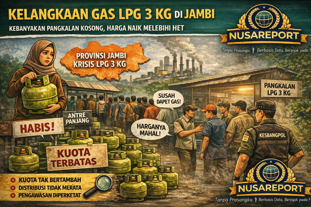 NUSAREPORT-Bungo,- Kelangkaan dan kenaikan harga LPG 3 kilogram yang terjadi di berbagai wilayah Provinsi Jambi dalam beberapa waktu terakhir menjadi perhatian serius pemerintah daerah. Kondisi ini tidak hanya dirasakan di satu kabupaten atau kota, tetapi dilaporkan hampir merata di seluruh Jambi, termasuk Kabupaten Bungo. Di lapangan, masyarakat mengeluhkan LPG 3 kg yang cepat habis di pangkalan, antrean panjang, serta harga jual yang melampaui harga kesepakatan.