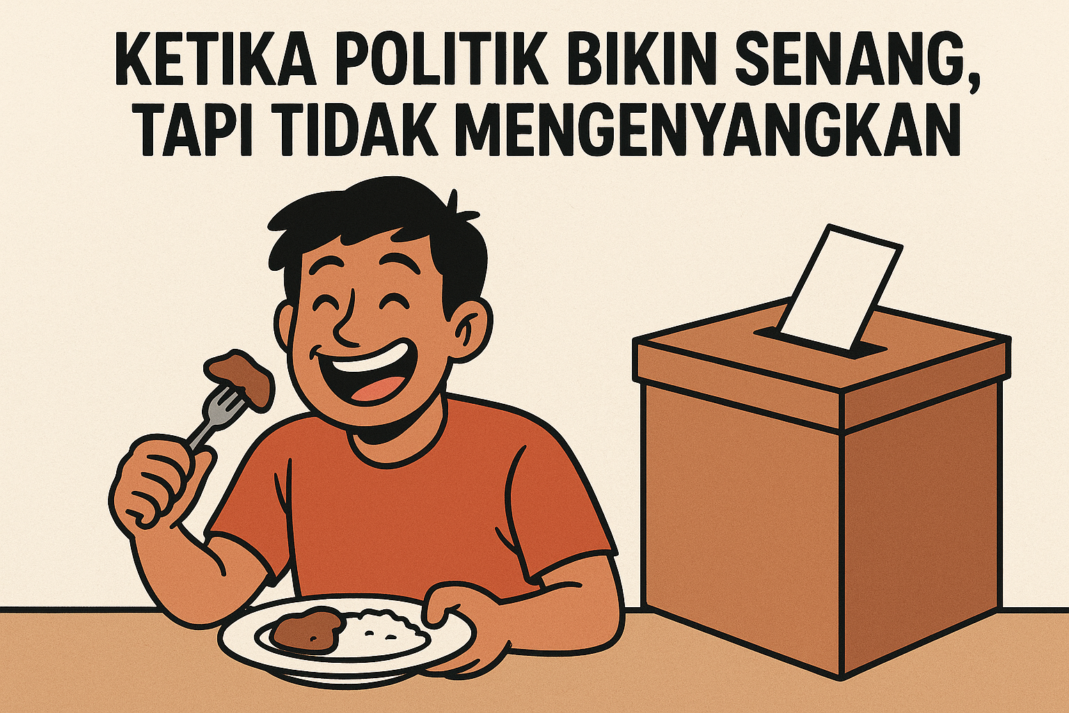 Di banyak kabupaten di Indonesia, kita sering menyaksikan politisi yang gemilang dalam pencitraan: pidato mengalir, janji megah, dan sambutan hangat masyarakat. Namun di balik sorak-sorai tersebut, kenyataan kehidupan sehari-hari rakyat tetap menuntut: bukan sekadar pepatah manis, melainkan nasi di meja makan; bukan hanya reklame yang indah, tetapi pekerjaan layak dan penghidupan yang stabil. Politik yang membuat hati senang memang penting, tetapi politik yang mampu mengenyangkan jauh lebih dibutuhkan.