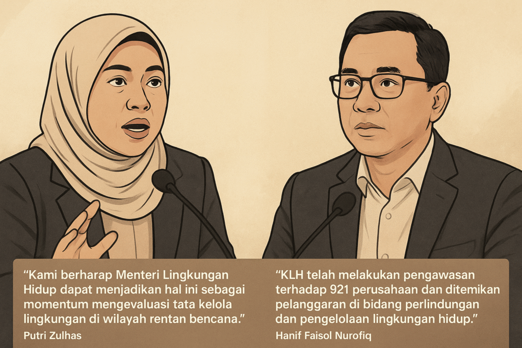 Dalam forum yang sama, Menteri LH Hanif Faisol Nurofiq menegaskan bahwa pemerintah telah mengawasi ratusan perusahaan yang diduga melakukan pelanggaran. Ia mengulang data resmi yang disampaikannya dalam konferensi pers di Jakarta, 17 September 2025, bahwa KLH telah memeriksa hampir seribu entitas usaha yang berpotensi merusak lingkungan. “KLH telah melakukan pengawasan terhadap 921 perusahaan dan ditemukan pelanggaran di bidang perlindungan dan pengelolaan lingkungan hidup,” kata Hanif.