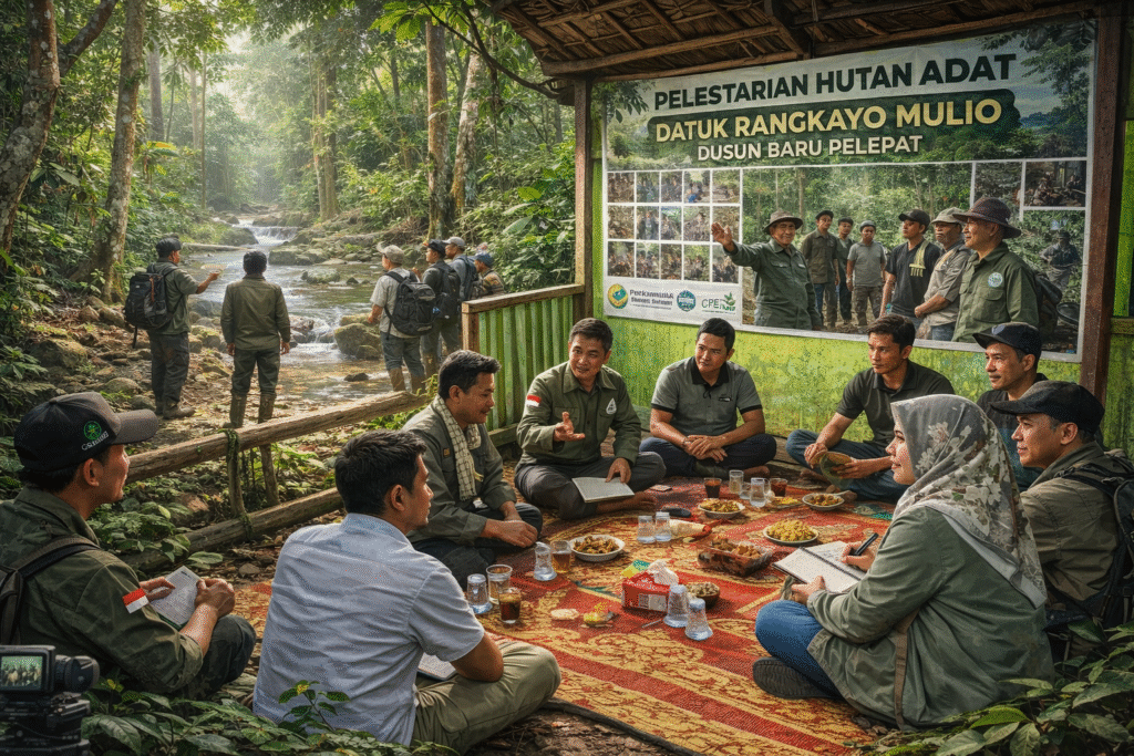 NUSAREPORT- Bungo,- Upaya menjaga kelestarian hutan adat terus diperkuat melalui kolaborasi lintas sektor. Hal ini tercermin dalam kunjungan sejumlah organisasi non-pemerintah (NGO) yang tergabung dalam Perkumpulan Gita Buana, CPES, serta perwakilan perusahaan perkebunan Asian Agri ke kawasan Hutan Adat Datuk Rangkayo Mulio di Dusun Baru Pelepat, Kabupaten Bungo.Rabu 11/2,  Kunjungan ini turut didampingi Ketua Komisi III DPRD Kabupaten Bungo, Hamdan, sebagai bentuk pengawasan sekaligus dukungan lembaga legislatif terhadap pengelolaan hutan berbasis kearifan lokal.