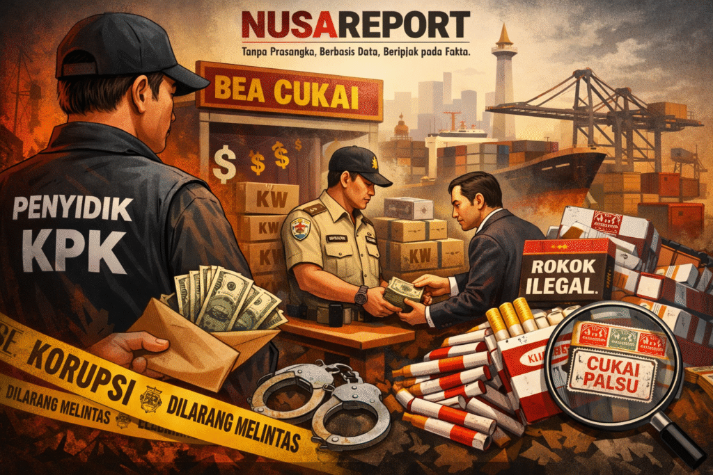 NUSAREPORT-Jakarta, Komisi Pemberantasan Korupsi (KPK) mengungkap dugaan praktik korupsi dalam pengurusan cukai di Direktorat Jenderal Bea dan Cukai (DJBC) Kementerian Keuangan yang dinilai berdampak pada semakin maraknya peredaran rokok ilegal di Indonesia. Dugaan manipulasi pita cukai disebut menjadi salah satu celah yang memperlemah pengawasan sekaligus merugikan penerimaan negara.