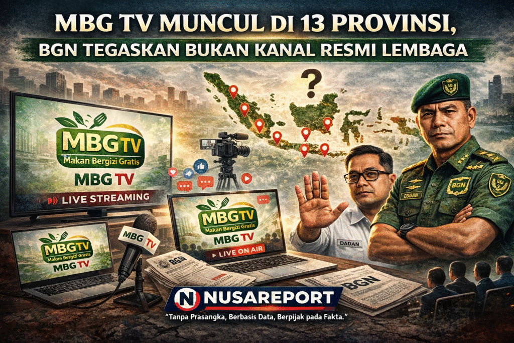 NUSAREPORT-Jakarta, Kehadiran kanal televisi baru bertajuk Makan Bergizi Gratis (MBG) TV memunculkan perhatian publik di tengah menguatnya isu program pemenuhan gizi nasional. Kanal ini disebut akan hadir melalui layanan live streaming dan menjangkau sedikitnya 13 provinsi, di antaranya Jakarta, Banten, Jawa Barat, Jawa Tengah, Jawa Timur, Sulawesi Utara, dan Lampung.
