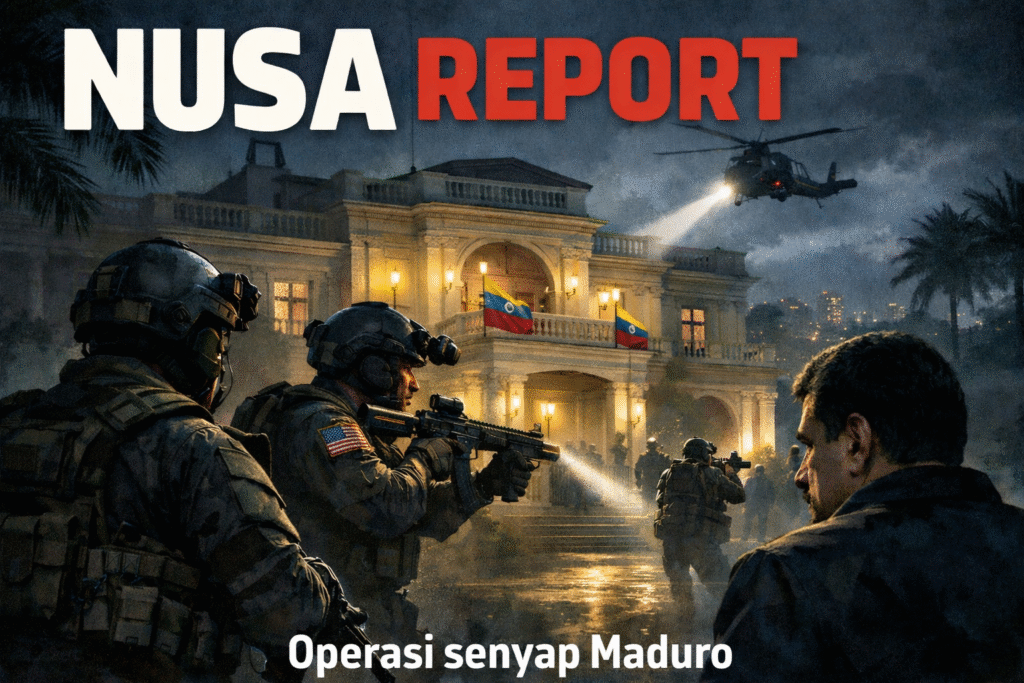 NUSAREPORT- Jakarta,Rabu 7/1/2026,- Sebuah laporan mengejutkan beredar di media asing pada awal Januari 2026. Situs PrimeNews24, dalam artikelnya yang terbit Selasa (6/1/2026), mengklaim Presiden Venezuela Nicolás Maduro diekstraksi oleh pasukan khusus Amerika Serikat melalui sebuah operasi senyap berdurasi kurang dari 12 menit, tanpa perlawanan berarti dari pengawal istana.