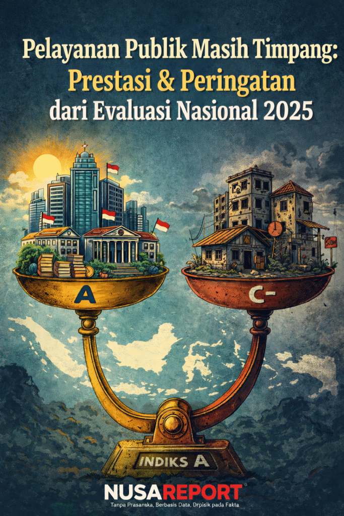 NUSAREPORT – Jakarta, Kamis 15/1/2026,- Pemerintah kembali memotret wajah pelayanan publik Indonesia melalui Pemantauan dan Evaluasi Kinerja Penyelenggaraan Pelayanan Publik (PEKPPP) Tahun 2025. Hasil evaluasi yang ditetapkan dalam Keputusan Menteri Pendayagunaan Aparatur Negara dan Reformasi Birokrasi Republik Indonesia Nomor 3 Tahun 2026 ini menghadirkan dua pesan sekaligus: prestasi yang patut diapresiasi dan peringatan serius bahwa kualitas pelayanan publik masih belum merata.