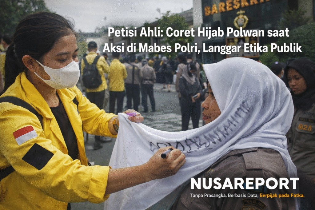 NUSAREPORT-Jakarta, Presiden Perkumpulan Praktisi Hukum dan Ahli Hukum (Petisi Ahli) Indonesia, Pitra Romadoni Nasution, mengecam aksi seorang mahasiswa yang mencoret kain penutup kepala (hijab) milik polisi wanita (Polwan) saat kegiatan penyampaian pendapat di kawasan Mabes Polri, Jumat, 27 Februari 2026. Pitra menilai tindakan tersebut bukan sekadar bentuk ekspresi, melainkan perilaku yang melampaui batas etika di ruang publik.