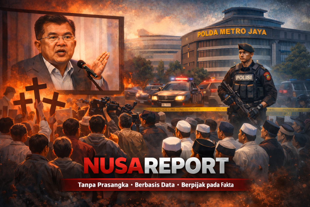 NUSAREPORT-Jakarta, 14 April 2026 — Polemik yang dipicu potongan video ceramah mantan Wakil Presiden Jusuf Kalla di lingkungan Universitas Gadjah Mada terus menghangat di ruang publik. Perdebatan tidak lagi sebatas media sosial, tetapi telah bergeser ke ranah hukum setelah sejumlah organisasi kepemudaan dan elemen masyarakat resmi melaporkan kasus tersebut ke Polda Metro Jaya.