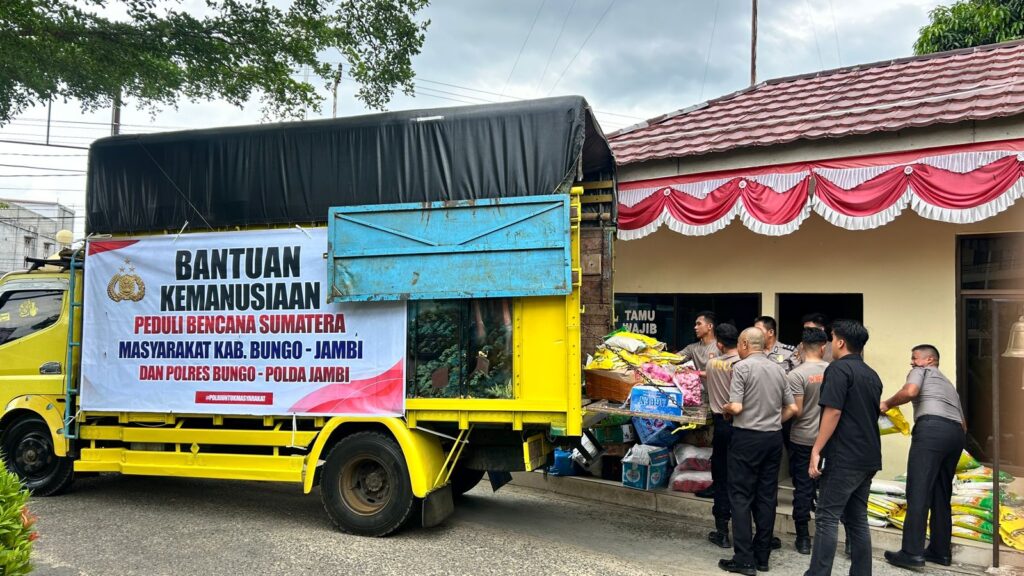 NUSAREPORT- Bungo,- Polres Bungo kembali mengerahkan bantuan bagi warga terdampak bencana di Kabupaten Agam dan Kabupaten Pariaman, Sumatera Barat, Hari ini Senin 8/12. Selain itu, Polres Bungo juga memperluas aksi kemanusiaan dengan mengirimkan dua truk bantuan ke Kota Sibolga, Sumatera Utara, berisi perlengkapan penting seperti bahan makanan, pakaian, perlengkapan mandi, selimut, terpal, logistik kebersihan, serta kebutuhan darurat lainnya.